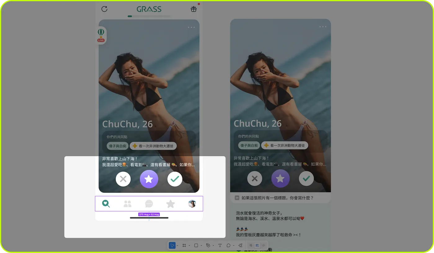 工程師打開 Figma 檔案時,第一件事通常是縮放到最小來看整體結構,然後思考要怎麼把這個 feature 拆分到不同的 code 檔案裡。他們會邊做邊檢查,確保 pattern 是對的,把 placeholder 內容想像成真實的資料。