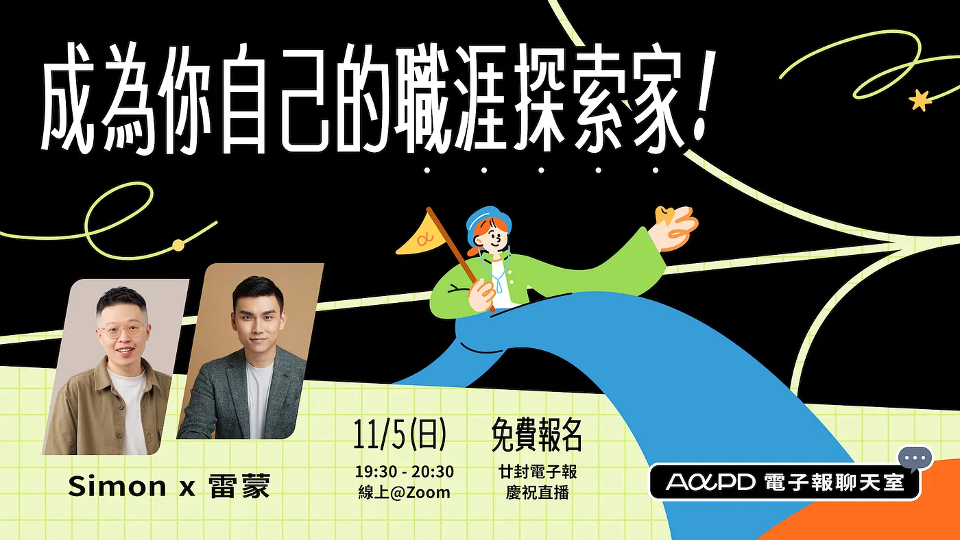 本文為電子報直播活動的重點摘要,若想知道更多細節的話,歡迎前往 ✦ AAPD 電子報聊天室 ✦ 成為你自己的職涯探索家!Simon x 雷蒙 看完整版影片。