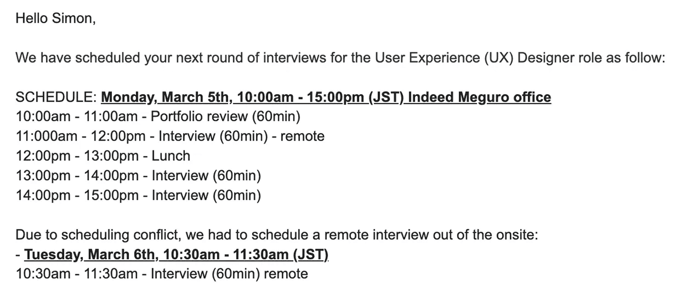 最後很幸運的,最終面試過後還不到一週,我就接到 Recruiter 的電話,告知我通過了面試以及給了我一個口頭 Offer, 還記得當下真的開心到整個人要飛起來(因為可以繼續待在日本不用打包回台灣)!而整體來說最後的 Offer 不論薪資結構、公司福利、和工作內容都比第一間日本新創公司好上非常多,可以說是大跳耀,所以即便職等只是個新手設計師,當時也毫不猶豫就直接接受了這個 Offer,也順利在幾週後正式加入了 Indeed 。