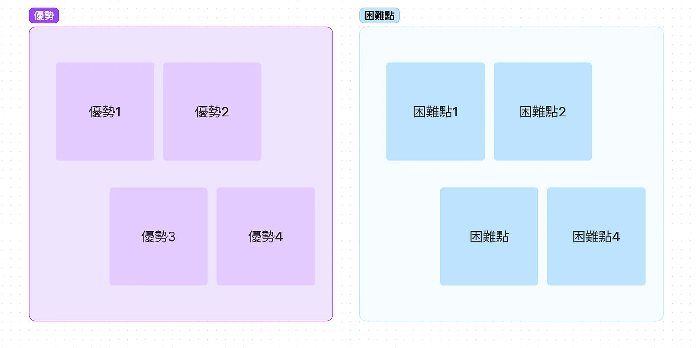 最後,我們透過辯論思維框架,分析了這題目對於團隊的優勢與困難點。綜合正反方論點及成員的各種觀點與意見,推導出適合我們的抉擇。