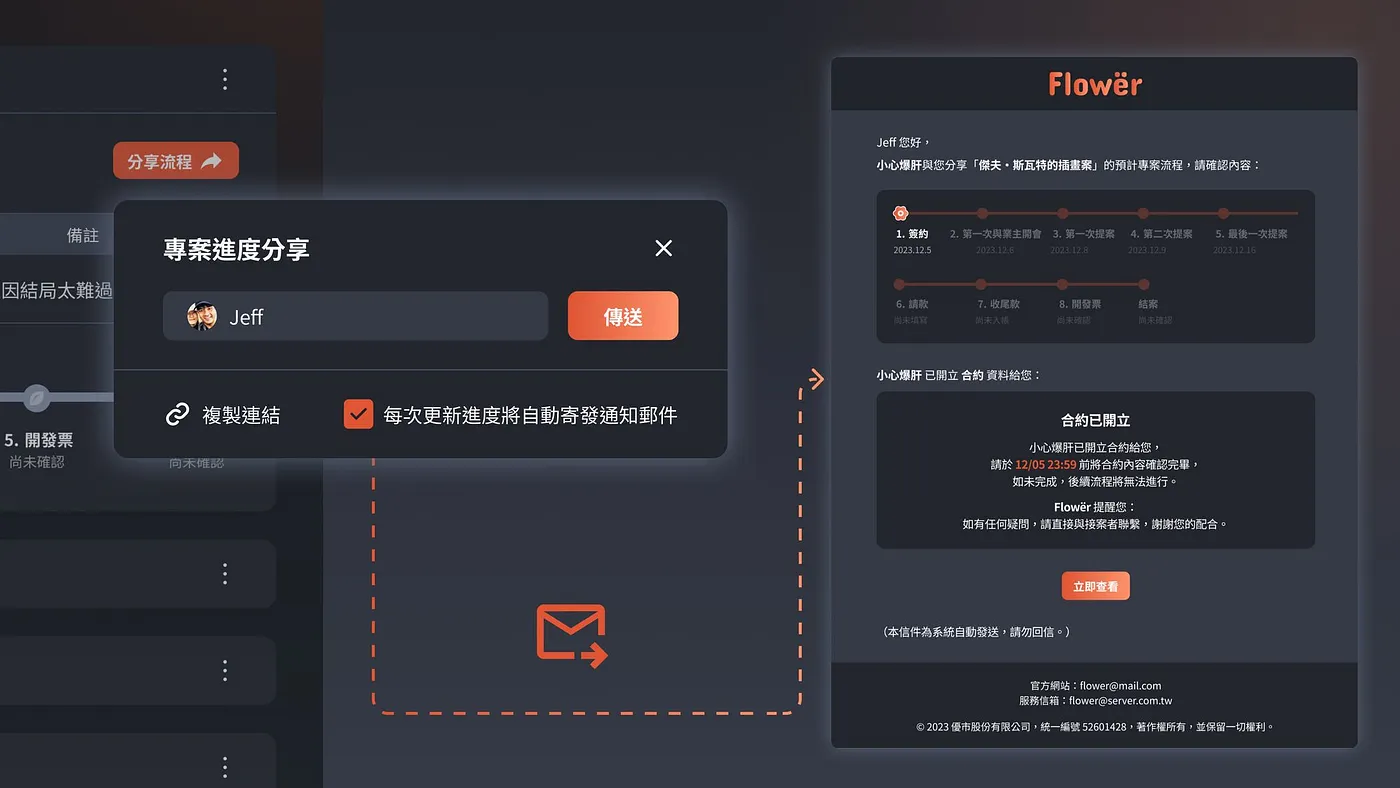 分享流程:與業主分享專案流程,專案進度自動化通知