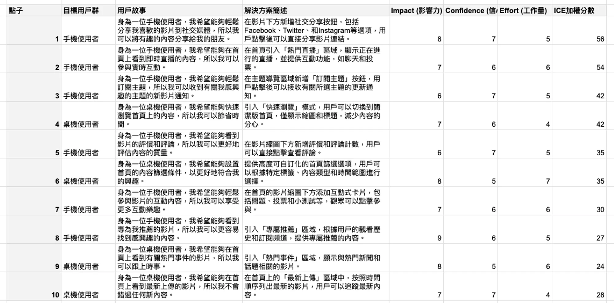 我的習慣是把產出的點子複製到 Google Sheet 上,這樣一來更方便編輯、標註以及後續操作。