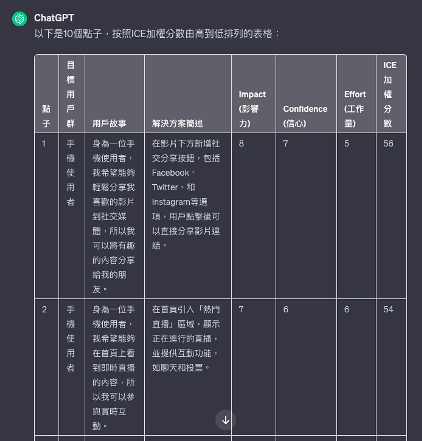💡注意,如果一下子要求太多點子的話(尤其是中文)很有可能會超過 ChatGPT的反應上限,因此建議小批量索取。